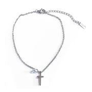 The Stainless Steel Cross and Crystal Anklet is a stylish and meaningful piece of jewelry that is perfect for those who value both fashion and faith. The anklet is crafted from durable and high-quality stainless steel, which ensures that it is resistant to tarnishing and rusting, making it suitable for everyday wear.