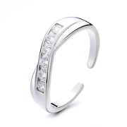 Sterling Silver Adjustable Twist Toe Ring with Crystals