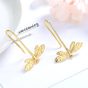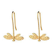 Sterling Silver and 14K Gold Dangle Dragonfly Earrings