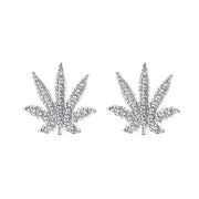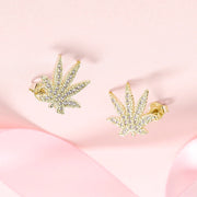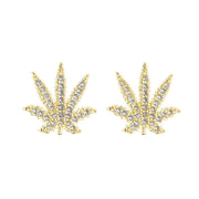 Sterling Silver And 14K Gold Hemp Leaf Earrings with crystals