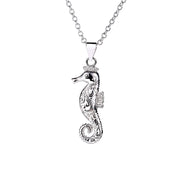 The chain of the necklace is simple and delicate, allowing the sea horse pendant to be the focal point of the design. The length of the chain can vary, allowing the wearer to customize the look of the necklace to their liking.