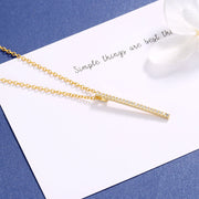 The Sterling Silver Bar Necklace with Crystals is a stunning and elegant piece of jewelry that is perfect for adding a touch of sparkle and sophistication to any outfit. The necklace features a delicate chain crafted from high-quality sterling silver, which is accented by a simple yet eye-catching bar pendant studded with crystals.