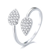 Sterling Silver Bypass Double Leaf Ring With Swarovski Crystals