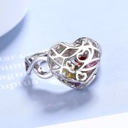 Sterling Silver Caged Floating Heart Ring Made with Swarovski Crystal