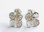 Sterling Silver Crystal Flower Stud Earrings in 18k Rose Gold