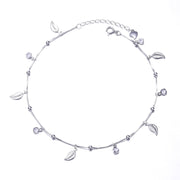 Sterling Silver Feather Anklet with Swarovski Crystals