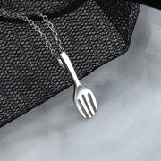 The Sterling Silver Fork Pendant Necklace is a unique and playful piece of jewelry that is sure to catch the eye of anyone who sees it. The pendant is crafted in the shape of a fork, with each prong extending outwards to create a whimsical and fun design.