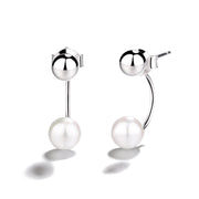 The high-quality sterling silver finish of the earrings adds a touch of luxury and sophistication to the overall design, while the lustrous cultured pearl adds a touch of classic elegance. The front-to-back design of the earrings is a modern twist on the traditional stud earring, adding a touch of edginess and uniqueness to the overall look.