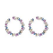 Sterling Silver Multi-Color J Hoop Earring with Crystals