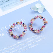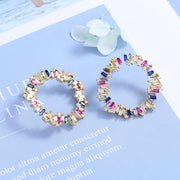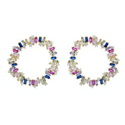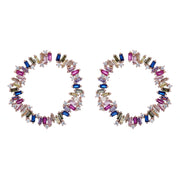 The combination of multi-colored crystals creates a dazzling and unforgettable look that will surely turn heads. The J hoop design adds a layer of sophistication and elegance to the earrings, making them perfect for dressing up or adding a pop of color to a casual outfit.