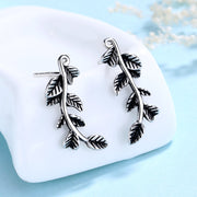 The oxidized finish of the earrings adds a touch of depth and texture to the overall design, giving the earrings a rustic and earthy feel. The leaf design is carefully detailed, with each vein and contour of the leaf expertly captured in the design.