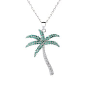 Sterling Silver Palm Tree with Genuine Crystals Pendant Necklace