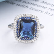 Sterling Silver Pave Crystal and Sapphire Ring