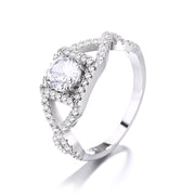 Sterling Silver Split Shank Halo Swarovski Crystal Engagement Ring
