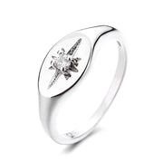 The band of the ring is slim and lightweight, making it comfortable to wear throughout the day and into the night. The sterling silver finish adds an extra layer of durability and resistance to the piece, ensuring that it will last for years to come.