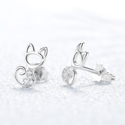 Sterling Silver Whimsical Cat Earrings with Swarovski Crystal