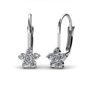 Swarovski Crystal Flower-Motif Leverback Earring in 18k White Gold