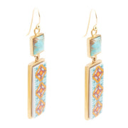 Talavera Tile and Blue Turquoise Golden Dangle Earrings