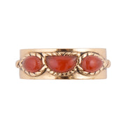 Add a touch of sparkle to your wardrobe with this beautiful handmade Triple Stone Simplicity Ring! Crafted with real Carnelian and Bronze, this accessory adds sophistication and elegance to any outfit. The ring is .3" in length across. The carefully placed stones combined with the gold-tone bronze bezel will be sure to turn heads wherever you go!