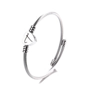 The Twisted Steel Heart Cable Initial Bracelet is a stylish and personalized piece of jewelry that features a twisted steel cable design with a heart charm and a personalized initial charm.