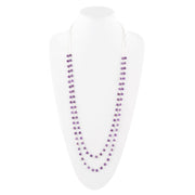 Add some colorful flair to your wardrobe with our genuine sterling silver and Amethyst necklace! Two rows of rosary linked faceted amethyst creates a unique piece that is sure to make a statement while only weighing 25.6 grams. Inner layer is 35" and outer layer is 37". With a 2" extender chain and lobster claw closure, it can be easily adjusted for the perfect fit.🌟