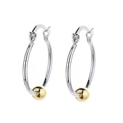 The earrings are made of high-quality metal with a two-tone gold finish, giving them a sleek and sophisticated look. The combination of the two-tone gold finish and the small gold beads creates a stunning contrast that is both eye-catching and elegant.