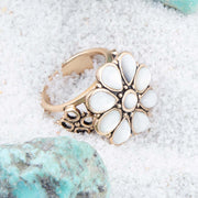 White Hibiscus Mother of Pearl and Golden Ring