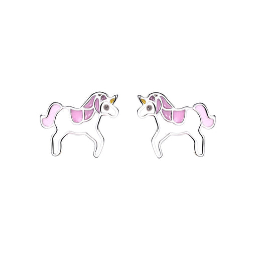 View full detailsThese Sterling Silver Pink and White Unicorn Stud Earrings are a playful and charming accessory that will add a touch of magic and fantasy to any o...