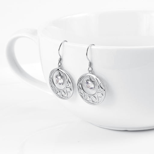 View full detailsThe Sterling Silver Filigree Round Drop Earrings with White Topaz are a beautiful and delicate pair of earrings that feature intricate filigree wor...