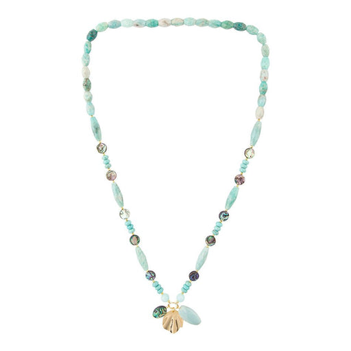 View full detailsGenuine Amazonite, Abalone, Turquoise Magnesite and Gold-Tone Metal. Length of necklace is 38" in length and has charms at the bottom of necklace ...
