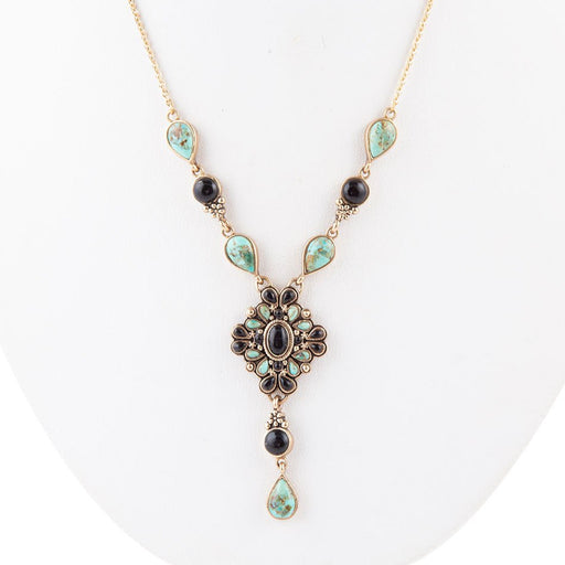 Gorgeous and unique, our Onyx and Turquoise Barcelona Y-Necklace makes a perfect statement piece. Hand-crafted with genuine Bronze, Turquoise, and ...