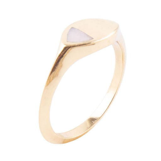 View full detailsGenuine Pink Opal and Bronze Ring. Genuine pink opal is placed inside top of the ring in a triangle shape. Top of ring is .5" length and .25" in w...