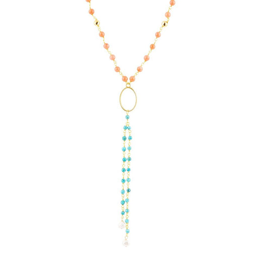 View full detailsExperience the elegance of genuine coral, magnesite, and pearl with our goldtone brass necklace. With an adjustable inner length of 28" and a drop ...