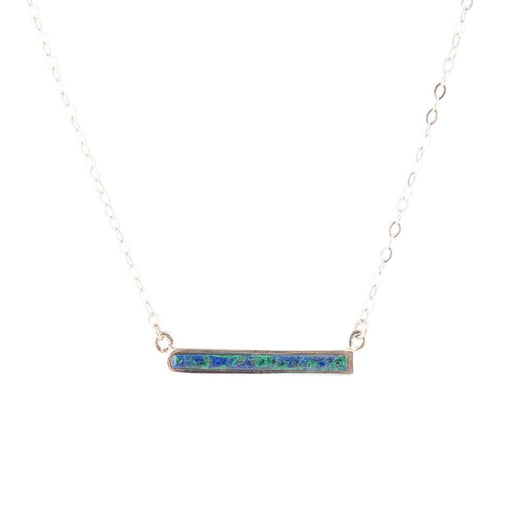 View full detailsThis dainty Azurite bar necklace is the perfect accessory for making a subtle statement. Crafted with sterling silver and featuring a genuine Azuri...