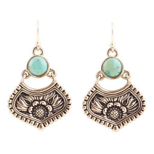 View full detailsExperience the timeless elegance of these handmade Turquoise Flourish Golden Bronze Drop Earrings. Crafted with meticulous attention to detail, the...