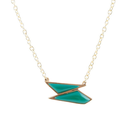 View full detailsCrafted and finished by hand, this exquisite necklace features genuine green onyx stones in golden bronze bezels, hanging elegantly from a 16" + 2"...
