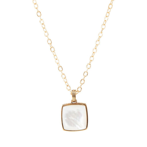 View full detailsBehold the beauty of our Squared Up Mother of Pearl Pendant Necklace. Its ornate, bronze setting with a square pendant measuring 1" x 1" is set wit...