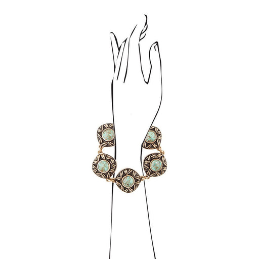 View full detailsIndulge in the exquisite beauty of genuine turquoise and bronze metal with this handcrafted, 8" long bracelet. Each link measures 1" and adds a t...