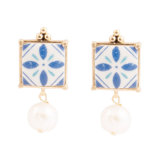 View full detailsExperience the beauty and elegance of Santorini Dreams with these stunning Freshwater White Pearl Post Golden Earrings. Featuring a square painted ...