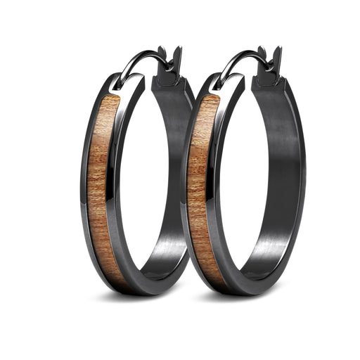 View full detailsJarrah wood set in a gunmetal plated surgical stainless steel 25mm hoop earring. Metal: Gunmetal Plated Stainless Steel Wood Inlay: Jarrah Engravi...