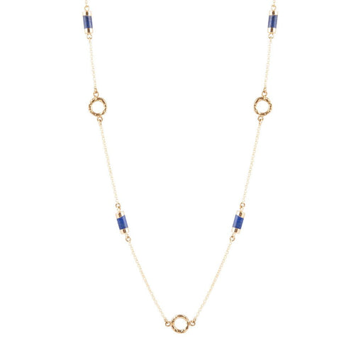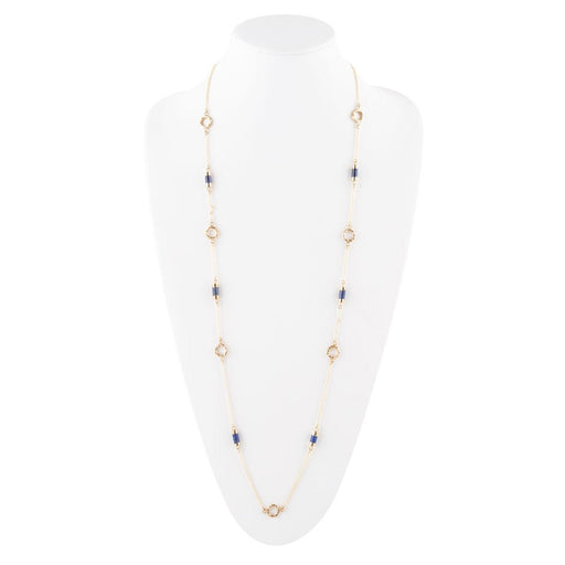 Indulge in the luxurious allure of our Long Delicate Lapis and Bronze Necklace. Made of genuine lapis and golden bronze, this 40" necklace features...