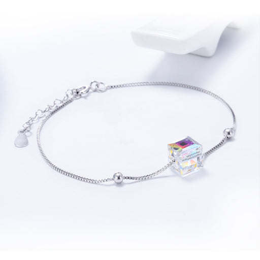 View full detailsThe Sterling Silver Aurora Borealis Swarovski Crystal Cube Bracelet from Amy and Annette is a stunning piece of jewelry that is perfect for adding...