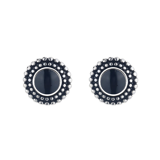 View full detailsThese earrings are made of Sterling Silver and feature a stud design with Onyx gemstones. The earrings have an artisanal feel to them, as they are ...