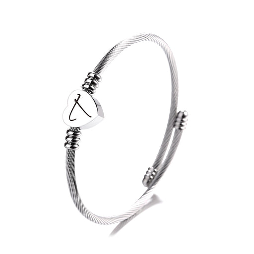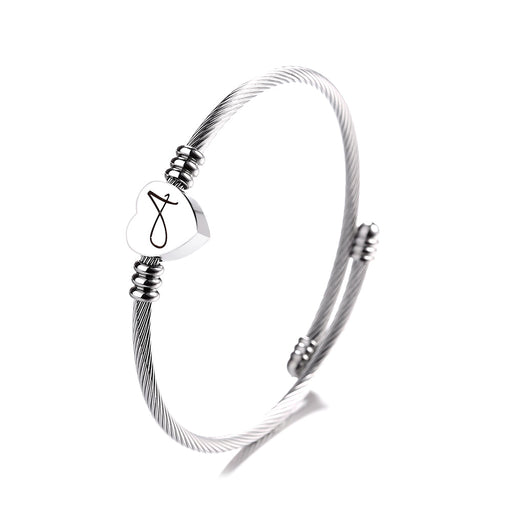 View full detailsThe Twisted Steel Heart Cable Initial Bracelet is a stylish and personalized piece of jewelry that features a twisted steel cable design...
