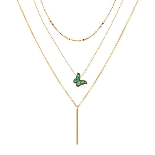 View full detailsThis Gold Layer Necklace is perfect for those who want to make a statement. With a beautiful Druzy Stone Butterfly Pendant, this necklace is sure t...