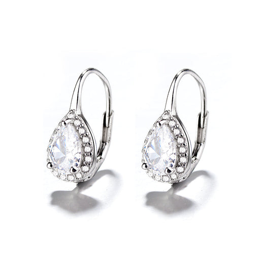 View full detailsLet your personality shine with these bright Sterling Silver Pear Omega Lever-back Halo Earring. These unique Pear Omega Lever-back Halo Earring wi...