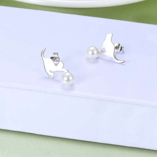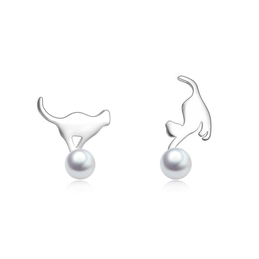 Show your love towards your furry friend with our Sterling Silver Cultured Pearl Cat Earrings. A beautiful piece of jewelry, this elegant cat is a ...