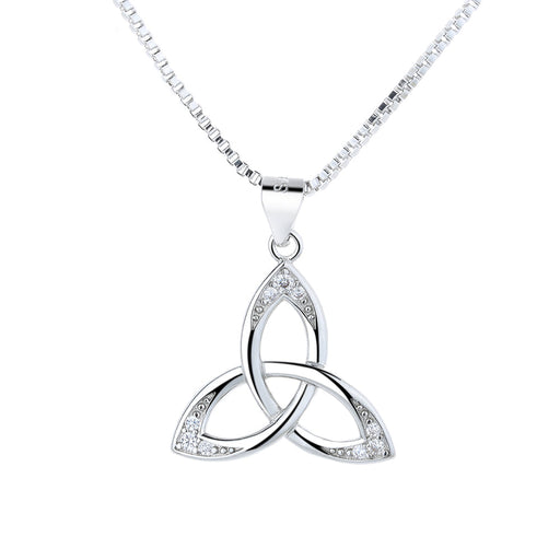 View full detailsThe Sterling Silver Celtic Pendant Necklace with Swarovski Crystals is a beautiful and intricate piece of jewelry that features a Celtic knot penda...