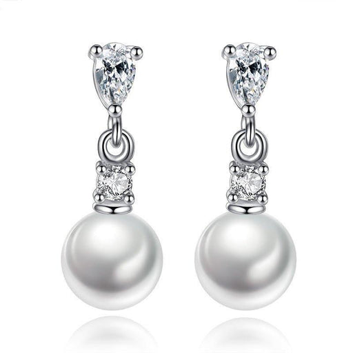 Hollywood Sensation's pearl drop earrings are simple, beautiful, and elegant. Length .75 Inches Width .25 Inches Faux Pearl AAA+ Cubic Zirconia G...