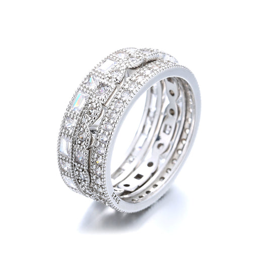 View full detailsThe Silvertone Milgrain Band Set with Crystals from Swarovski is a stylish and versatile set of rings that is perfect for any occasion. The set inc...